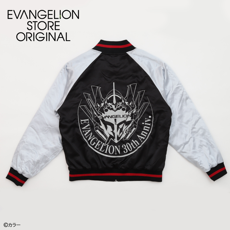 『エヴァンゲリオン』放送30周年を記念したエンブレムが、背面に大きく刺繍されたスカジャンです。