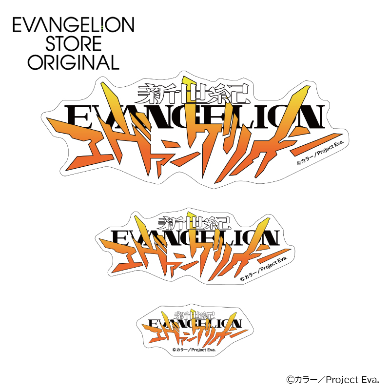 『新世紀エヴァンゲリオン』のロゴをあしらった、大・中・小サイズの3枚入りダイカットステッカーです。
