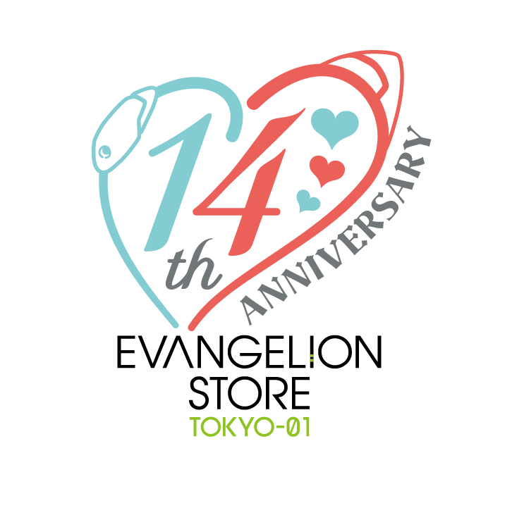 描き下ろし絵に合わせた、レイとアスカをイメージしたハートマークのかわいい14周年記念ロゴも要チェック!