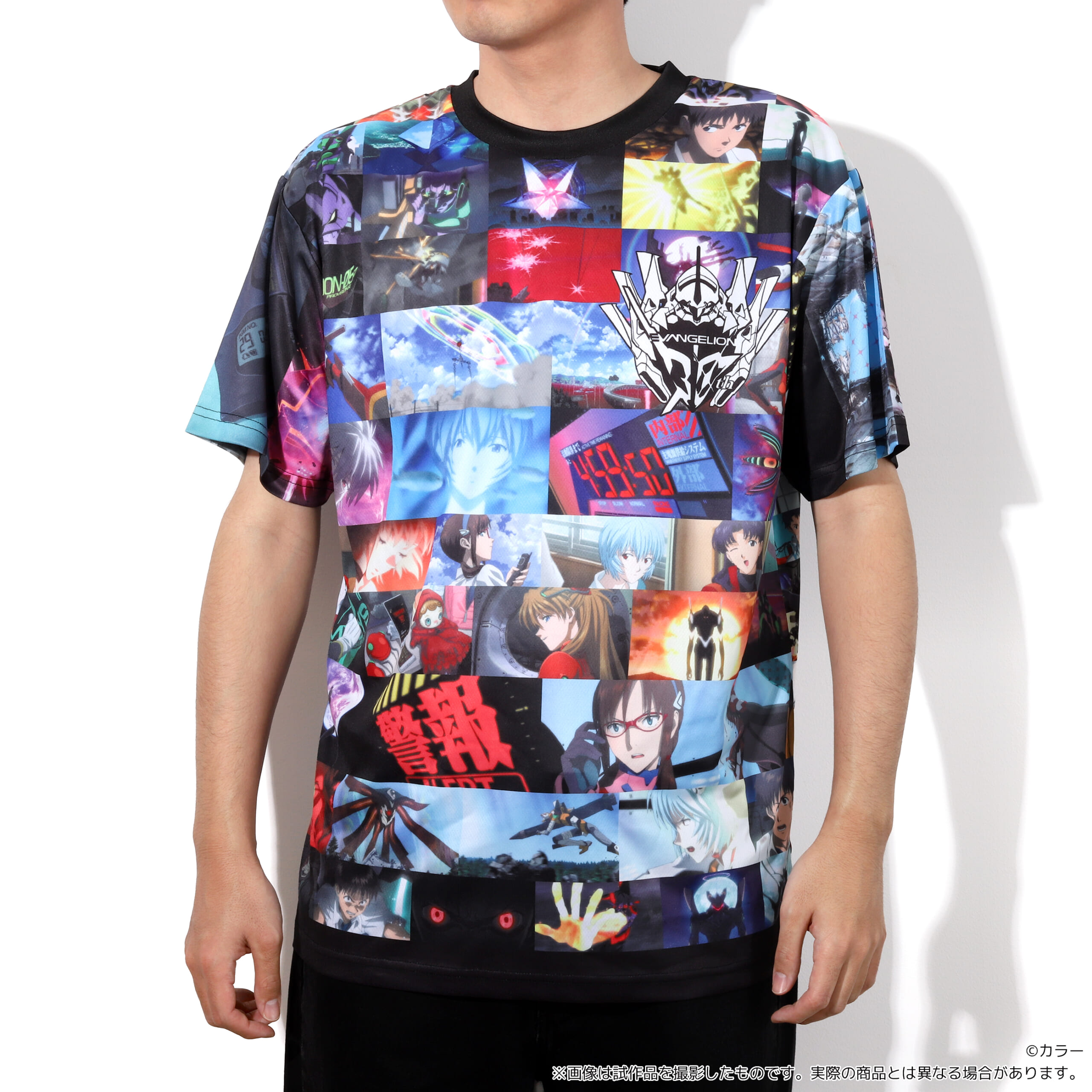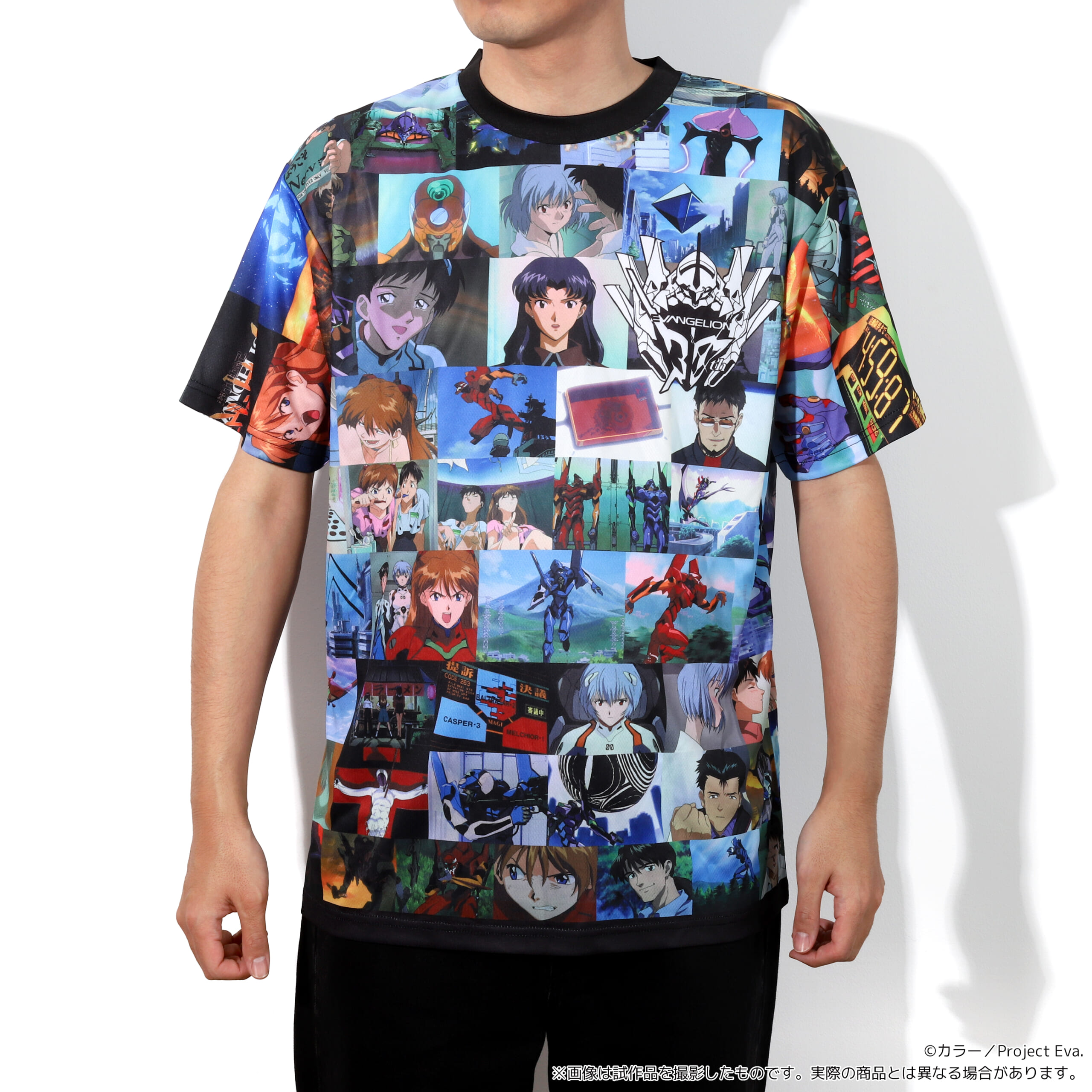 『新世紀エヴァンゲリオン』に登場する場面写が全面にデザインされたフルグラフィックTシャツです。